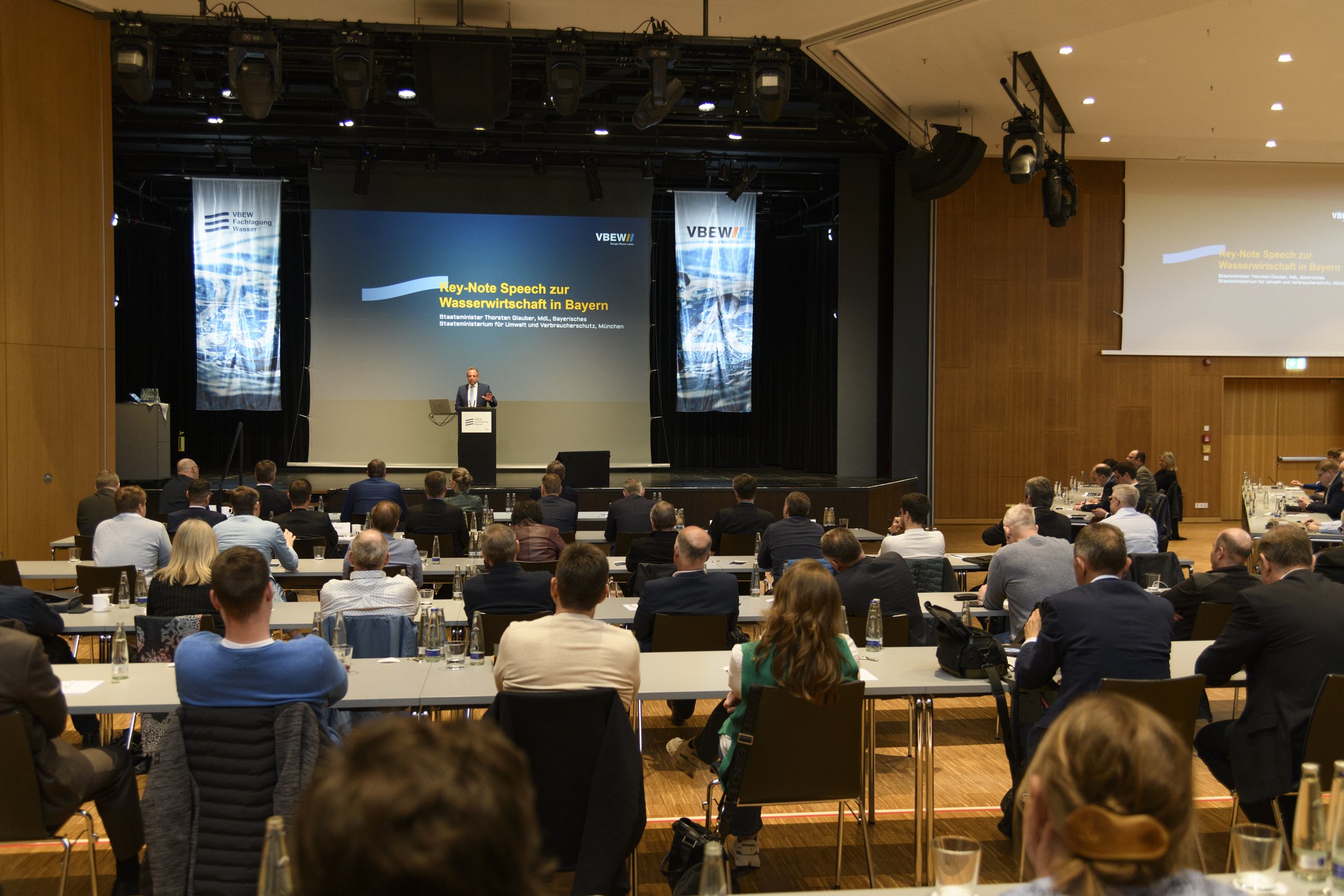 Bayerns Staatsminister für Umwelt und Verbraucherschutz, Thorsten Glauber, betonte in seiner Keynote-Speech zur Eröffnung der Tagung: "Eine gesicherte Wasserversorgung gehört zu den größten Zukunftsaufgaben. Unsere kostbarste Ressource muss geschützt werden. Klar ist: Wassermanagement geht nur gemeinsam. Kommunen, Verbände, Wissenschaft, Industrie und Verwaltung arbeiten dafür Hand in Hand. Das jährliche Expertentreffen des VBEW bringt alle wichtigen Vertreter der Wasser- und Energiebranche zusammen. Das ist ein bedeutender Baustein für eine nachhaltige Versorgung Bayerns mit Wasser und Energie."